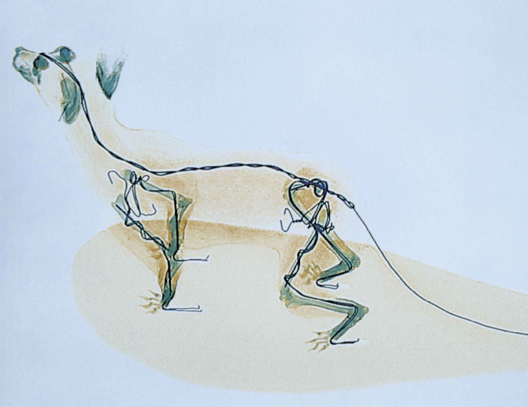 Die ÄsopScans von Rémy Markowitsch verweisen in ihrer Benennung auf den altgriechischen Dichter Äsop, der als Begründer der Fabel gilt. Der Schweizer Künstler durchleuchtet mit einem Röntgenapparat, wie man ihn von Sicherheitskontrollen kennt, Tiere, die in den mythologischen Fabeln eine Rolle spielen. Dass es sich hier um ausgestopfte Tiere handelt, zeigt ihr Innenleben, dessen stoffliche Zusammensetzung durch die Farbigkeit der Scans offenbart wird: Orange steht für organisches Material, Blau für anorganisches, Grün für Mischmaterial. Wie in den Fabeln geht es um moralische Fragen – doch anderer Art, weil die Tiere nicht vermenschlicht werden, sondern ihre Objektifizierung sichtbar wird: als Forschungsobjekt, Ware oder Wohnzimmerdekor.